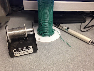 Solder, wire, and solder sucker.